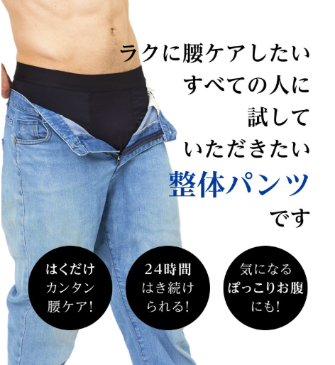 この整体パンツの最大のポイントは、「整骨院の施術メソッドを1枚の下着に凝縮」している点です。
